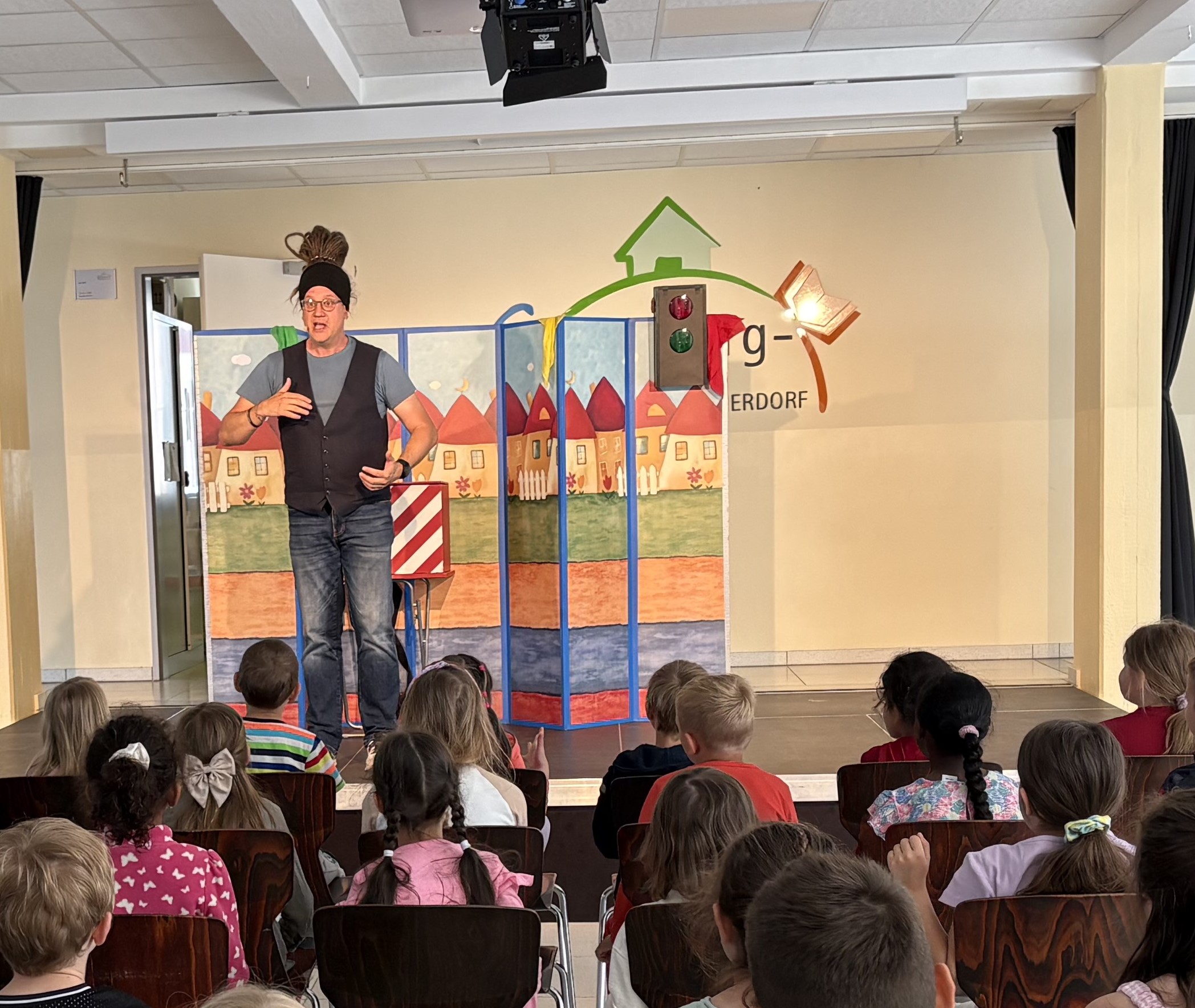 Am 16.05.2025 kam der Verkehrszauberer zu Besuch an die Gutenberg- Schule und begeisterte die Schülerinnen und Schüler der 1. und 2. Klassen mit seiner einzigartigen Mischung aus Zauberei und Verkehrserziehung. Durch beeindruckende Zaubertricks und anschauliche Vorführungen vermittelte er den Kindern wichtige Regeln für ein sicheres Verhalten im Straßenverkehr. Besonders begeistert waren die Kinder davon, aktiv in die Zaubershow eingebunden zu werden. Ob als kleine Zauberassistenten oder bei anschaulichen Übungen, durch spielerische und handelnde Darstellungen konnten die Kinder nicht nur zuschauen, sondern direkt mitmachen und die gelernten Regeln gleich anwenden. Mit viel Lachen und Staunen war der Vormittag ein voller Erfolg. Ein großes Dankeschön an den Verkehrszauberer für diese zauberhafte Art, Sicherheit im Straßenverkehr zu vermitteln!