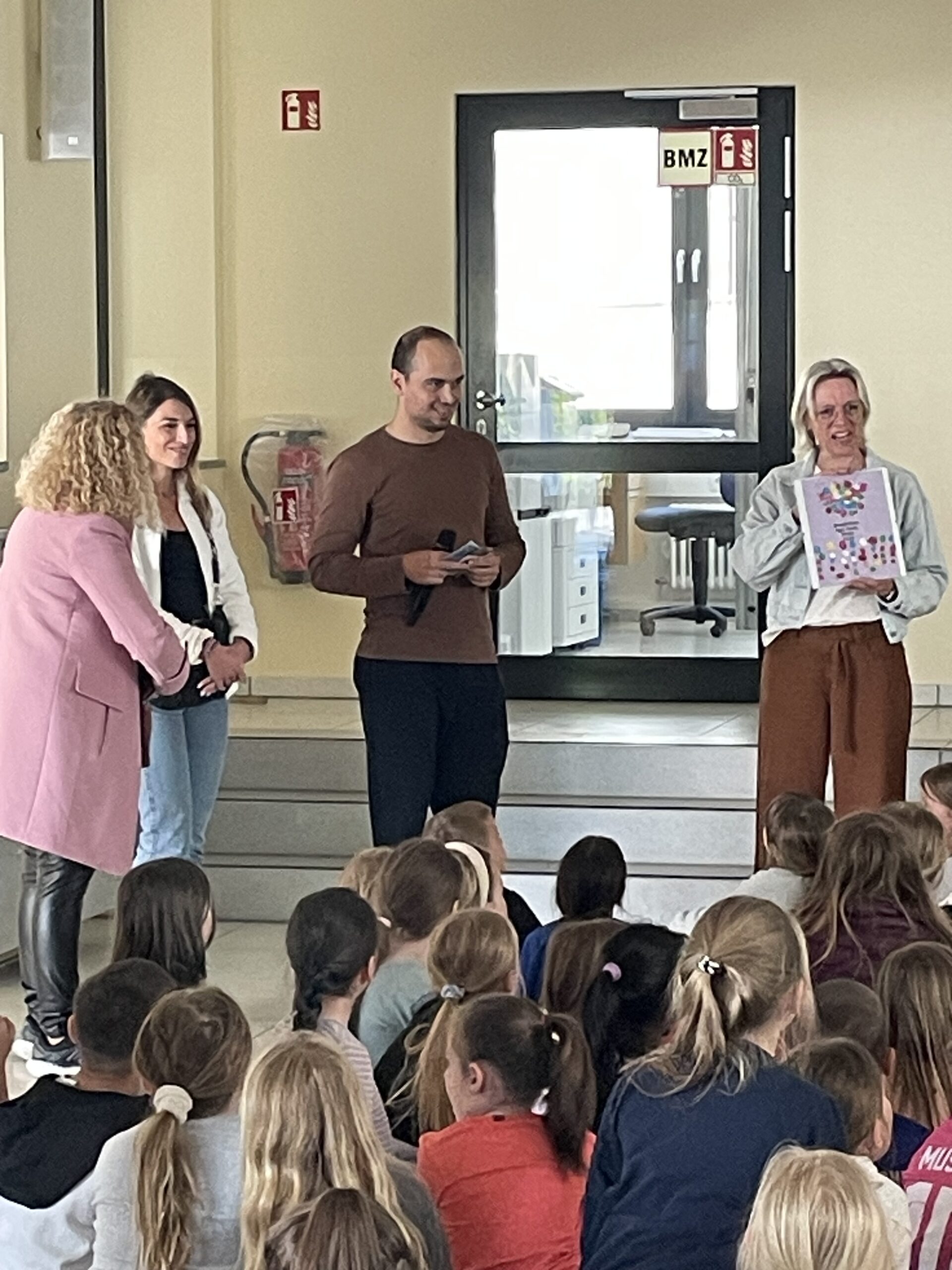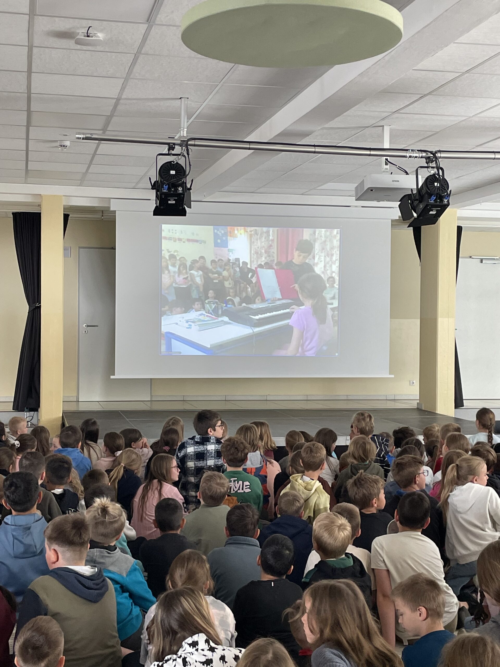 Ein ganz besonderer Moment war die Live-Schaltung in die rund 2200 km entfernte Schule nach Agia Galini: Die 34 Kinder der kretischen Schule und die etwa 300 Kinder aus Dierdorf begegneten sich zum ersten Mal in der Webkonferenz. Gegenseitige Liedvorträge und donnernder Applaus sorgten für Gänsehautmomente und stärkten das Gefühl der europäischen Gemeinschaft bereits bei den Jüngsten.